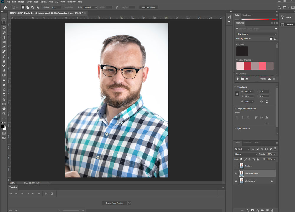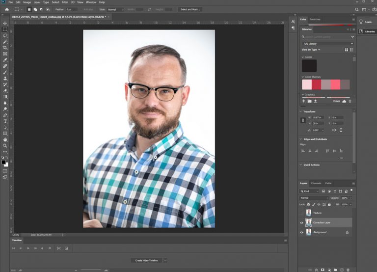During the photography work that I do alongside my graphic design work, I am often in a position to take staff photos for a client when commissioned to build or update a company website. Not everyone can afford to bring in a makeup artist to prepare each staff member for this type of corporate photography, and they most definitely do not have the time to do so. This is where skin retouching is extremely helpful and can put the finishing touch on the job. The most beneficial skill in skin retouching is frequency separation.